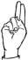 На ћирилици написано АНДРЕА РАДУШКИ састоји се из 13 слова [?]. Исписано ћириличном једноручном азбуком за глувонеме: